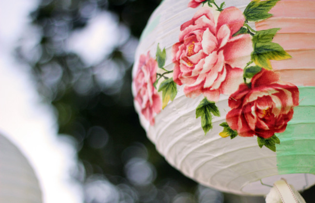 Um pouquinho de tinta, uns recortes de flores e pronto: uma luminária só sua – imagem via Pinterest