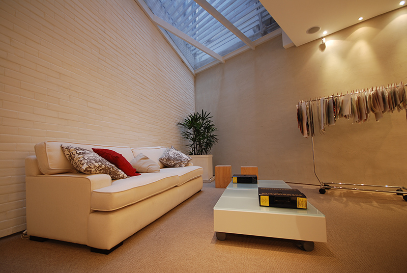 Como o escritório só recebia iluminação natural vinda de um prisma de ventilação, este trecho ganhou um jardim de inverno e foi circundado pelas salas de diretoria e de criação. No showroom principal, a claraboia permite a entrada de iluminação natural.