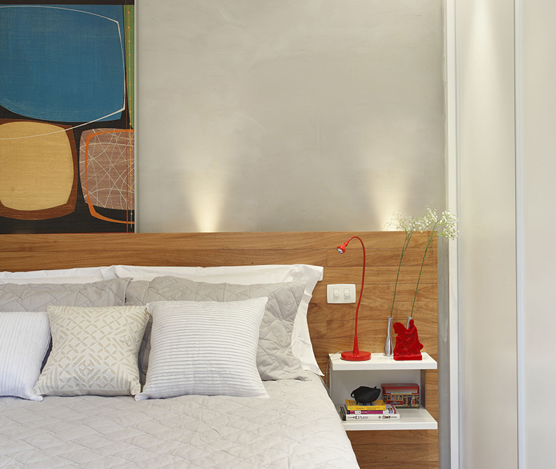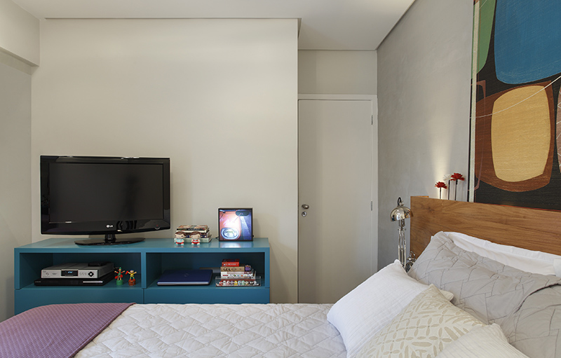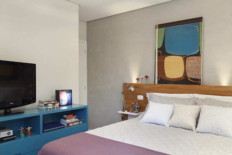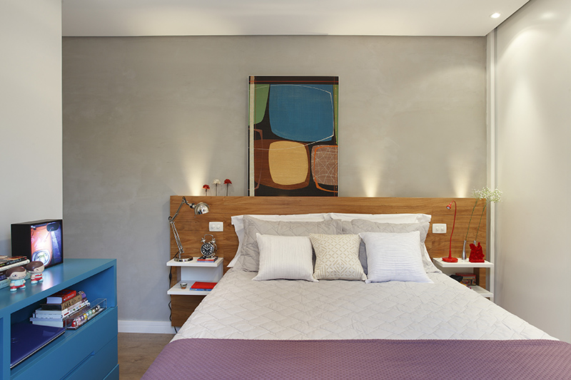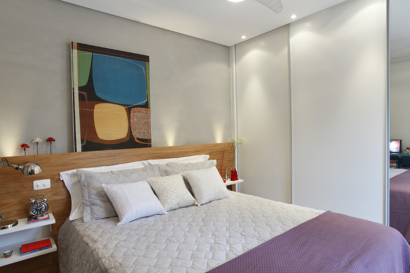 O layout proposto seguia os pedidos dos clientes: ter uma cama queen size e espaço mais aconchegante. Já o foco para o projeto do escritório foi ampliar o espaço, tanto para área de trabalho como para organizar objetos.