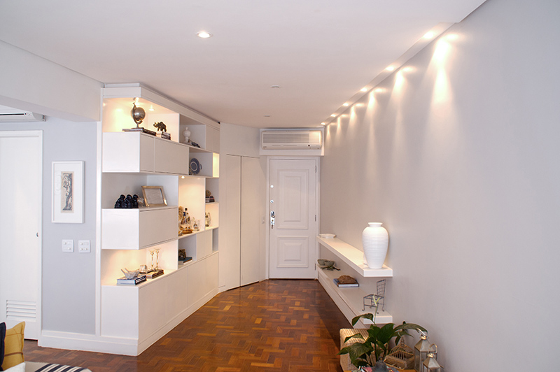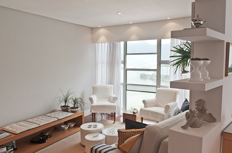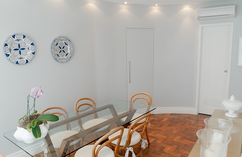 O desafio foi criar ambientes aconchegantes numa planta onde o perímetro circular do edifício acabava impondo diversas quinas e paredes angulares.