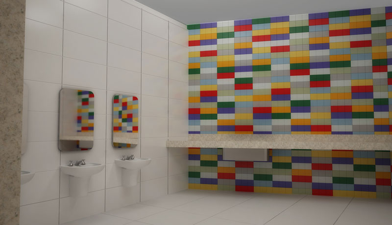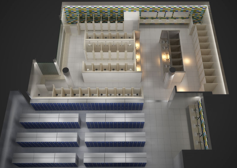 O projeto para os vestiários masculino e feminino ganhou versão similar do painel de cores. Para o vestiário feminino o painel utilizou cores que combinavam tons de azul, verde e pinceladas de laranja.