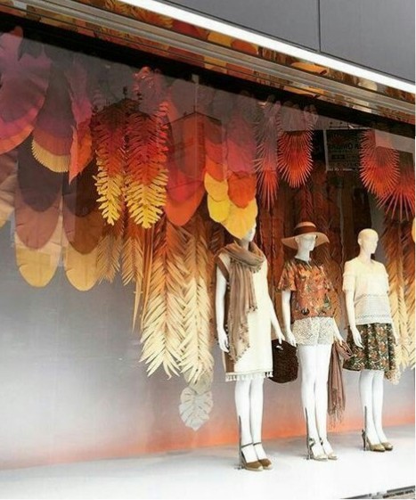 Aproveite o outono e produza uma vitrine charmosa usando este tema. Mas cuidado: evite utilizar plantas naturais pois o odor que elas produzem conforme o tempo vai passando pode afastar ou invés de atrair clientes. Neste caso prefira flores ou folhagens secas e até mesmo as flores confeccionadas de papel ou material reciclado.